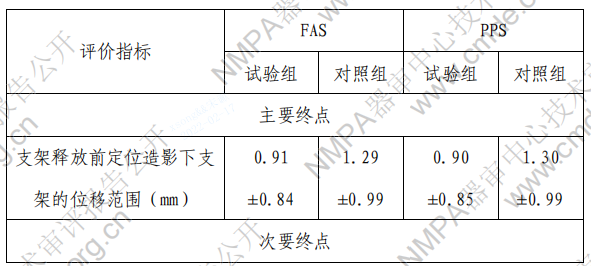 该试验的主要评价指标为支架释放前定位造影下支架的位移